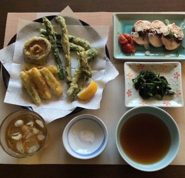 アスパラとシイタケしかもらっていないのにこれだけの品数をササっと作ってしまう歯科衛生士さん。もうすでに全て掴まれているけど胃袋まで掴まれる。