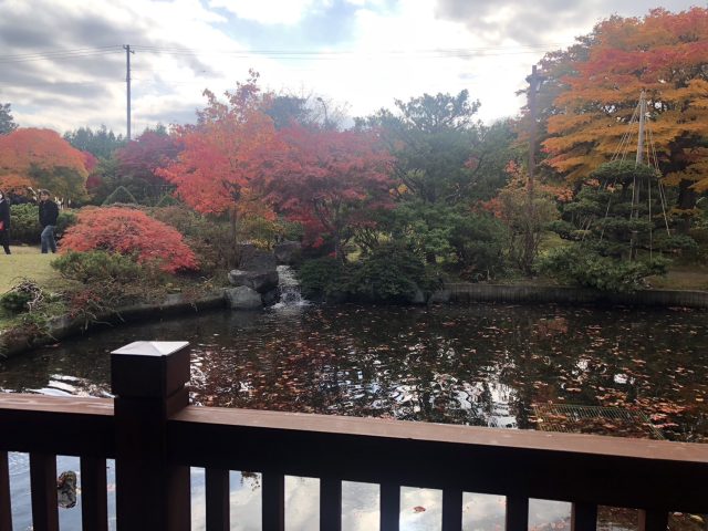 松の緑や黄色があったり赤があったりしてとても綺麗な紅葉でした。